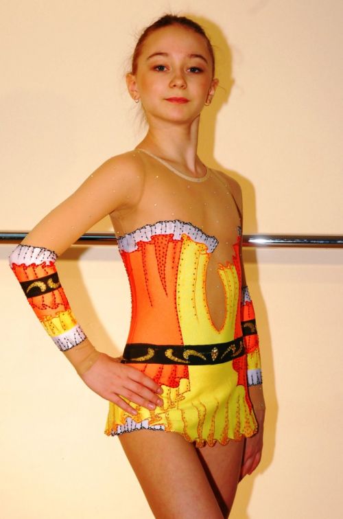 ![]() Купальник для художественной гимнастики со стразами (желто-оранжевый |